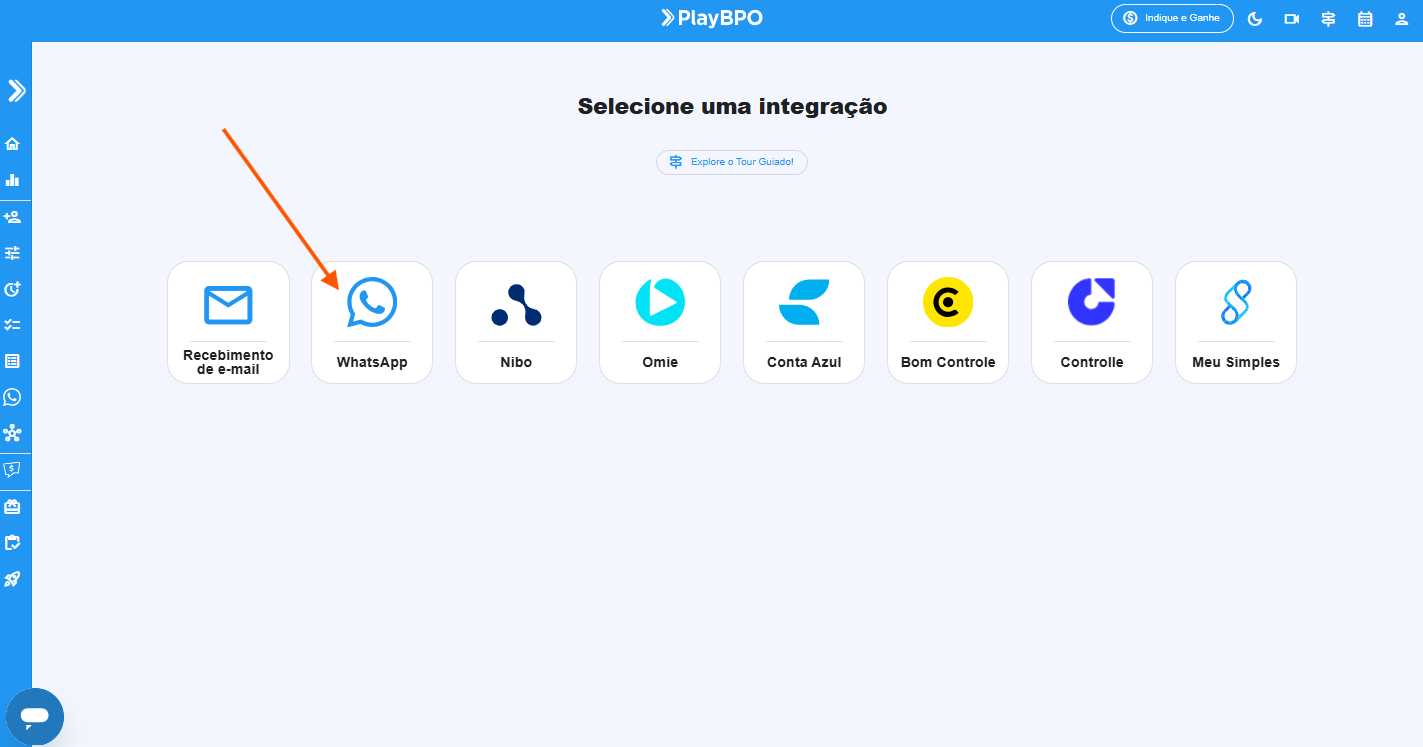 - VƔ no Menu lateral> IntegraƧƵes > WhatsApp.
