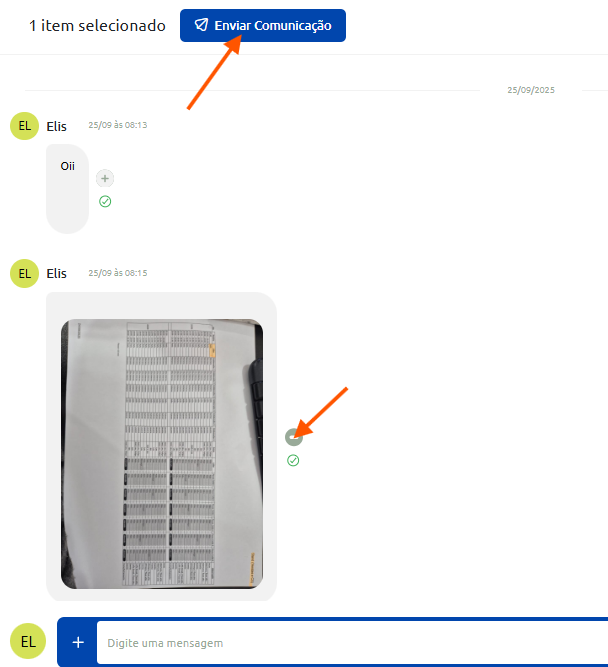 - Dentro da conversa, clicando na opção āSelecionar mensagemā, vocĆŖ consegue enviar a comunicação para a empresa.
