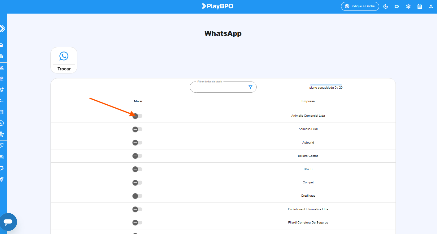 - Acesse a PlayBPO com login de gestor/admin.
