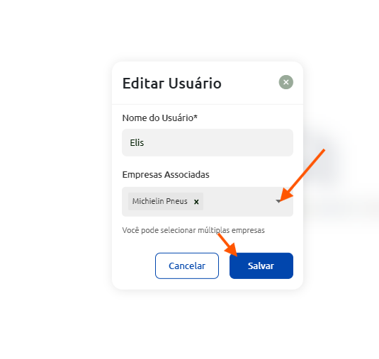 - Escolha a empresa que estƔ associada ao usuƔrio (cliente) e clique em Salvar