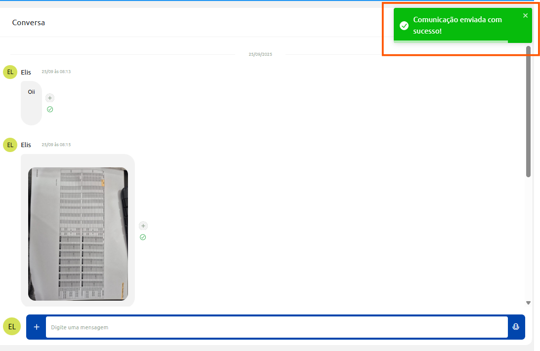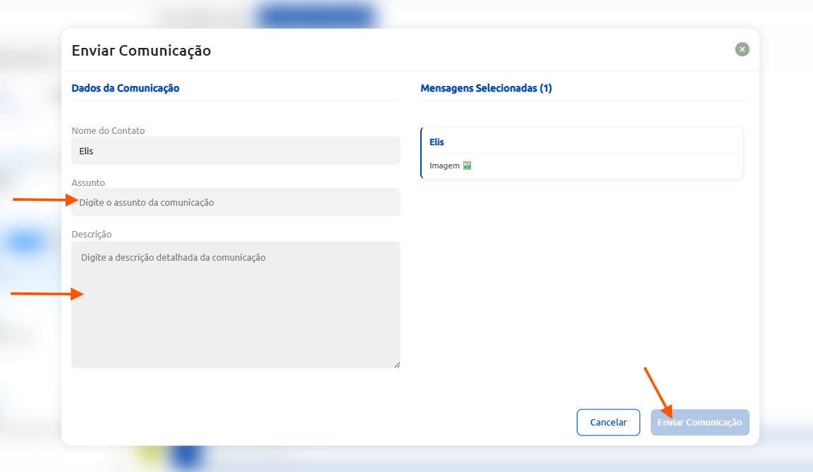 - Clique no botão Enviar comunicação e aguarde a confirmação