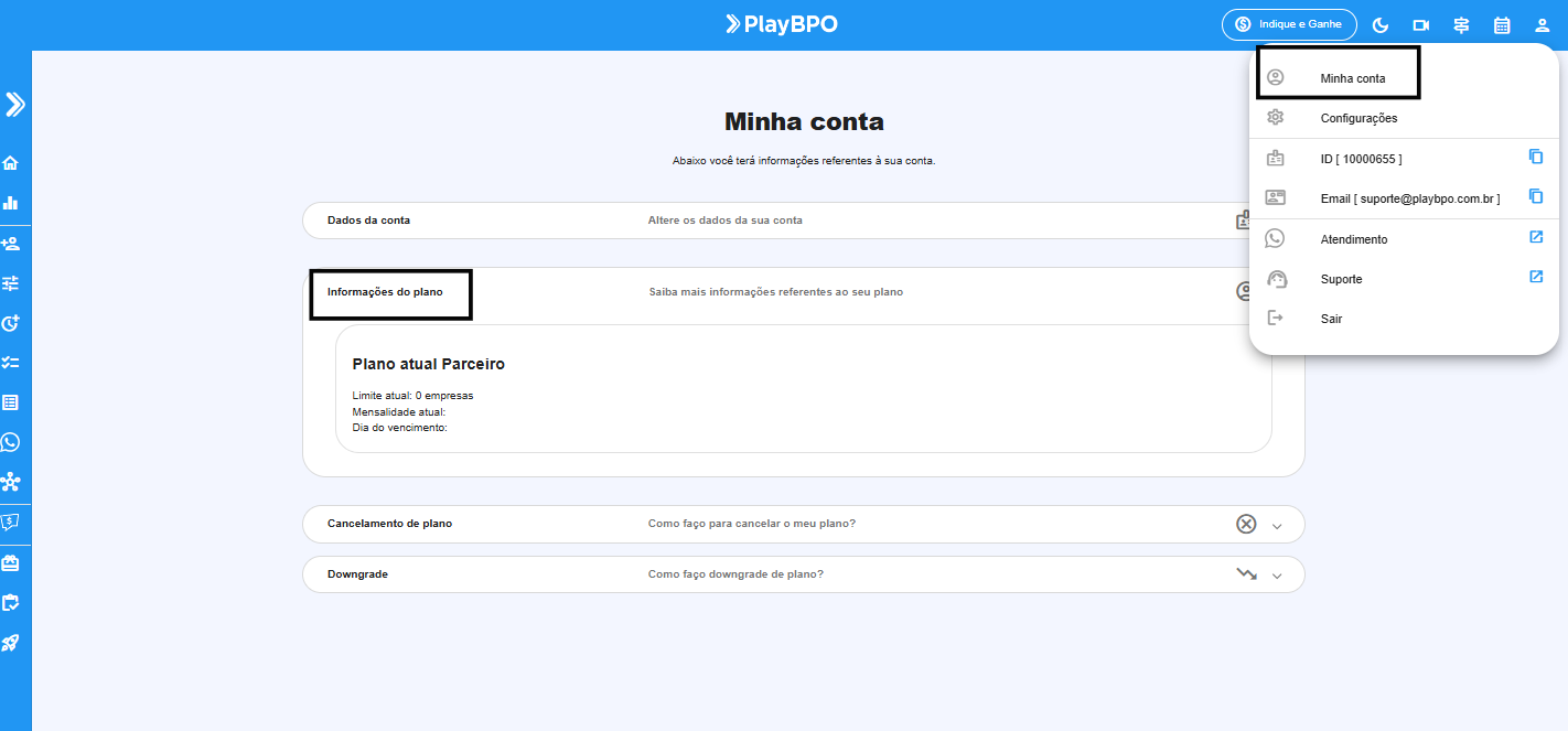 2️⃣ No menu superior, clique em Minha Conta.
